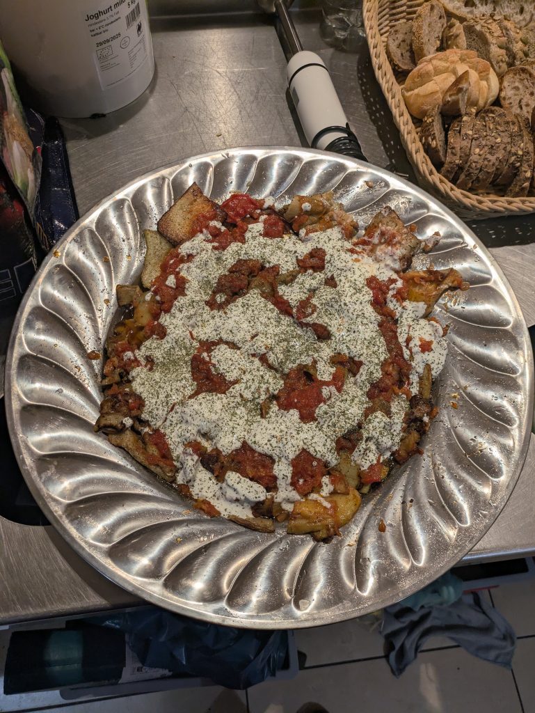 Neu auf dem Tisch war diesmal Boran-i Banjan – gebratene Auberginen mit einer würzigen Tomatensoße und cremigem Knoblauchjoghurt.