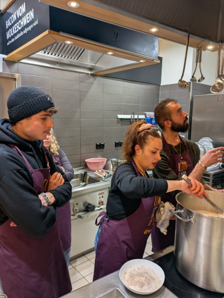 Das gemeinsame Kochen ist für viele Geflüchtete ein echter Lichtblick. Beim Koch-Event „Taste of Barnim“ kommen sie mit Einheimischen ins Gespräch, schließen Freundschaften und lernen ganz nebenbei Deutsch – durch Begegnung, Austausch und Miteinander. Es findet alle paar Wochen im Café Gustav am Marktplatz in Eberswalde statt.