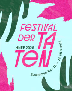 Die HNEE lädt vom 12. bis 14. März 2026 zum „Festival der Taten“ ein. Euch erwartet ein buntes Programm unter dem Motto „Zusammen-Tun: Wo Begegnung Wirkung entfaltet“. In rund 40 Workshops, Vorträgen, Filmvorführungen, Science Slam sowie Exkursionen erkunden wir, welchen Wert persönliche Begegnungen und gemeinsames Engagement für eine sozialökologische Transformation haben. Denn echte Begegnungen verbinden, ermutigen, eröffnen Perspektiven und machen deutlich: Wir können gemeinsam etwas bewegen.